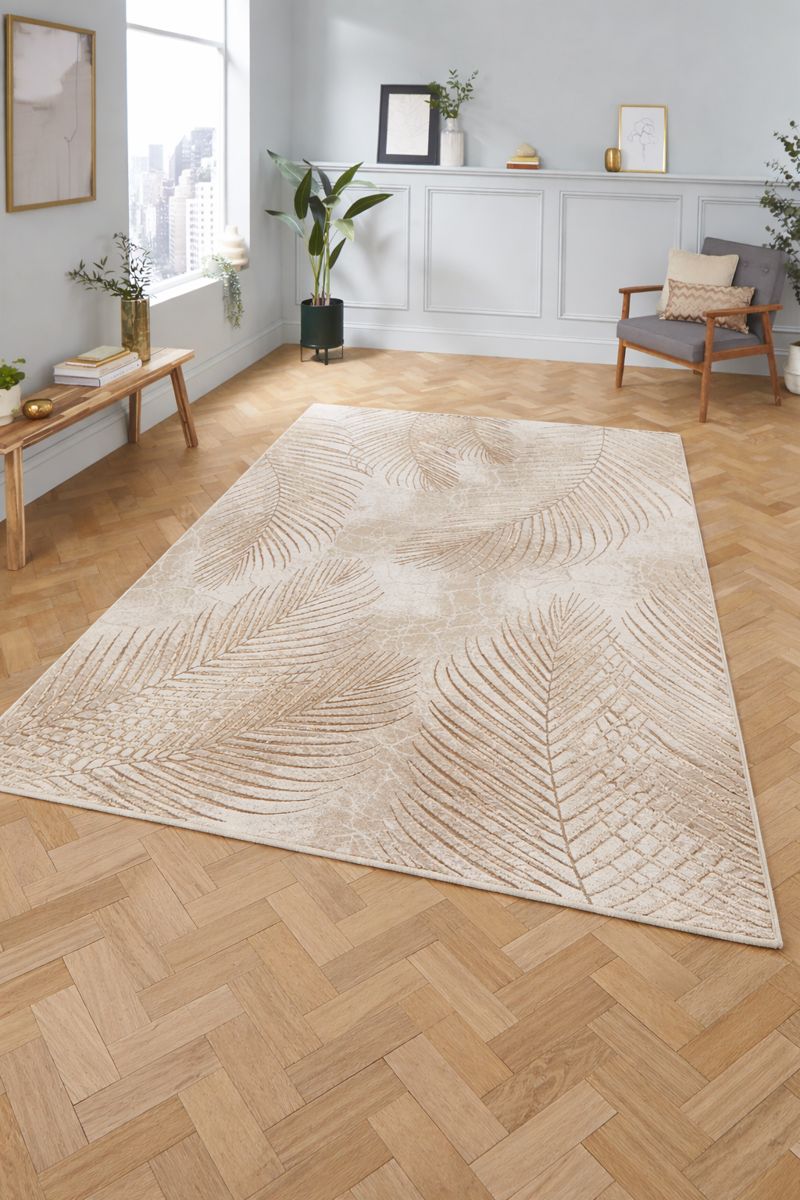 Cream beige feather patterned rug