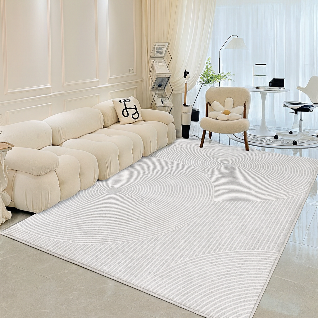 This luxurious dark brown living room rug features soft, curved patterns that add depth and a subtle focal point to the space. It easily complements light-colored sofas and suits modern, minimalist styles.
